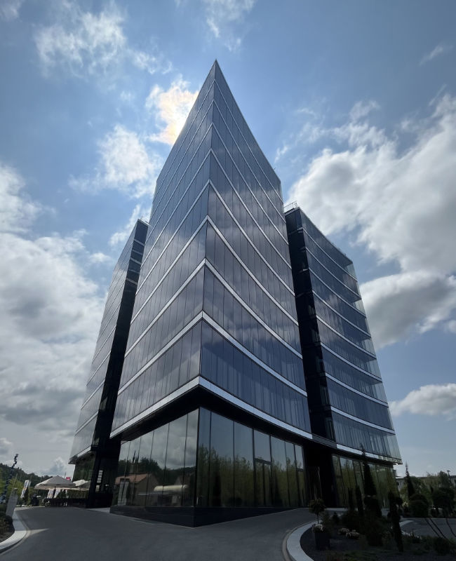 - Grundrissabmessungen des aufgehenden Verwaltungsgebäudes ca. 36m x 36m; Untergeschosse in WU-Bauweise. Massivbauweise in Stahlbeton; 2-geschossiges UG mit 8,4 m Wassersäule für Auftriebsnachweise für nicht überbaute Bereiche; inkl. Sprinklerbecken; Tiefgründung bzw. Bodenverbesserung; wasserdichter rückverankerter Spundwandverbau.